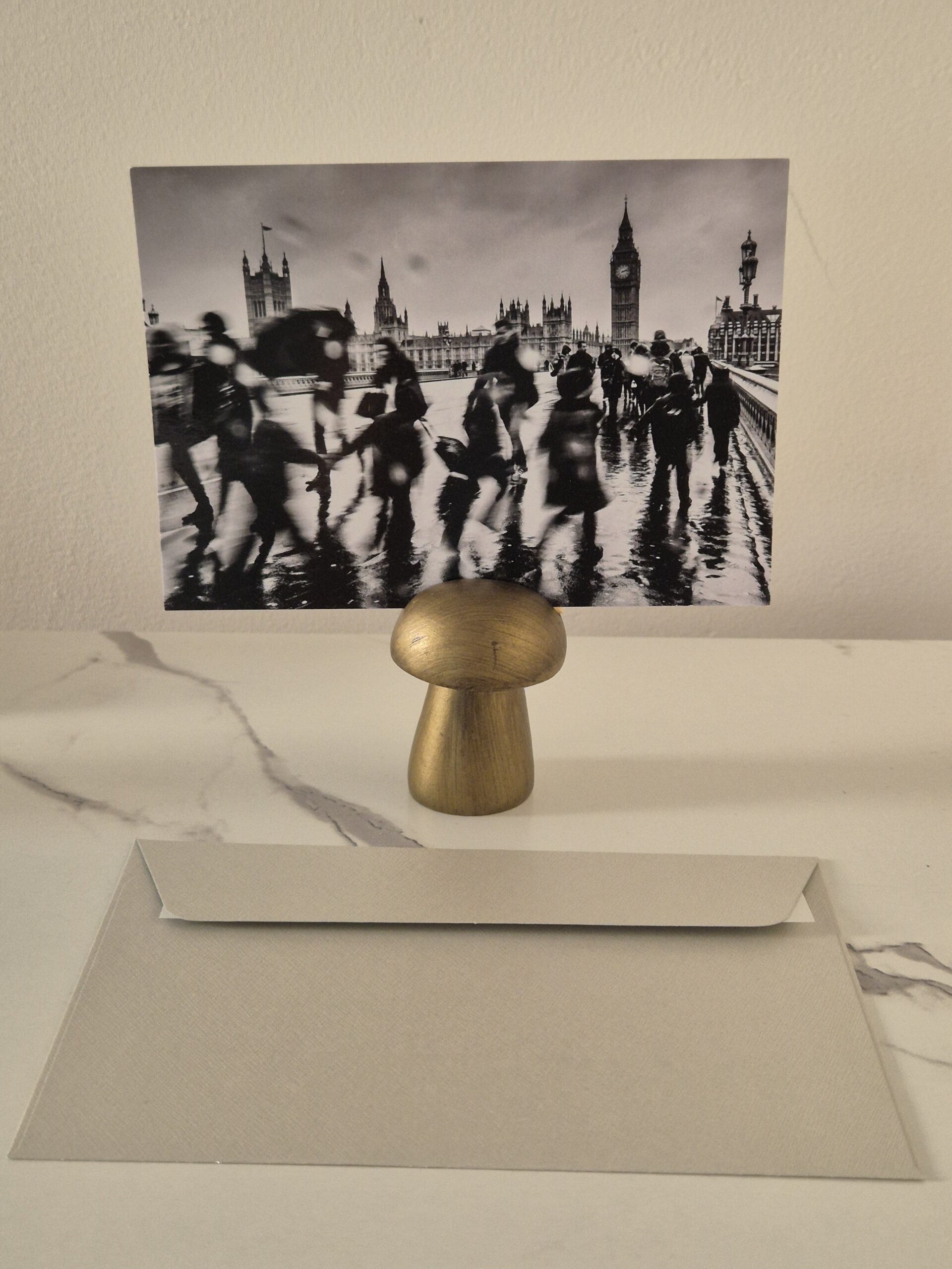 The postcard comes with a matching envelope and features a blank interior, perfect for your own personal message.